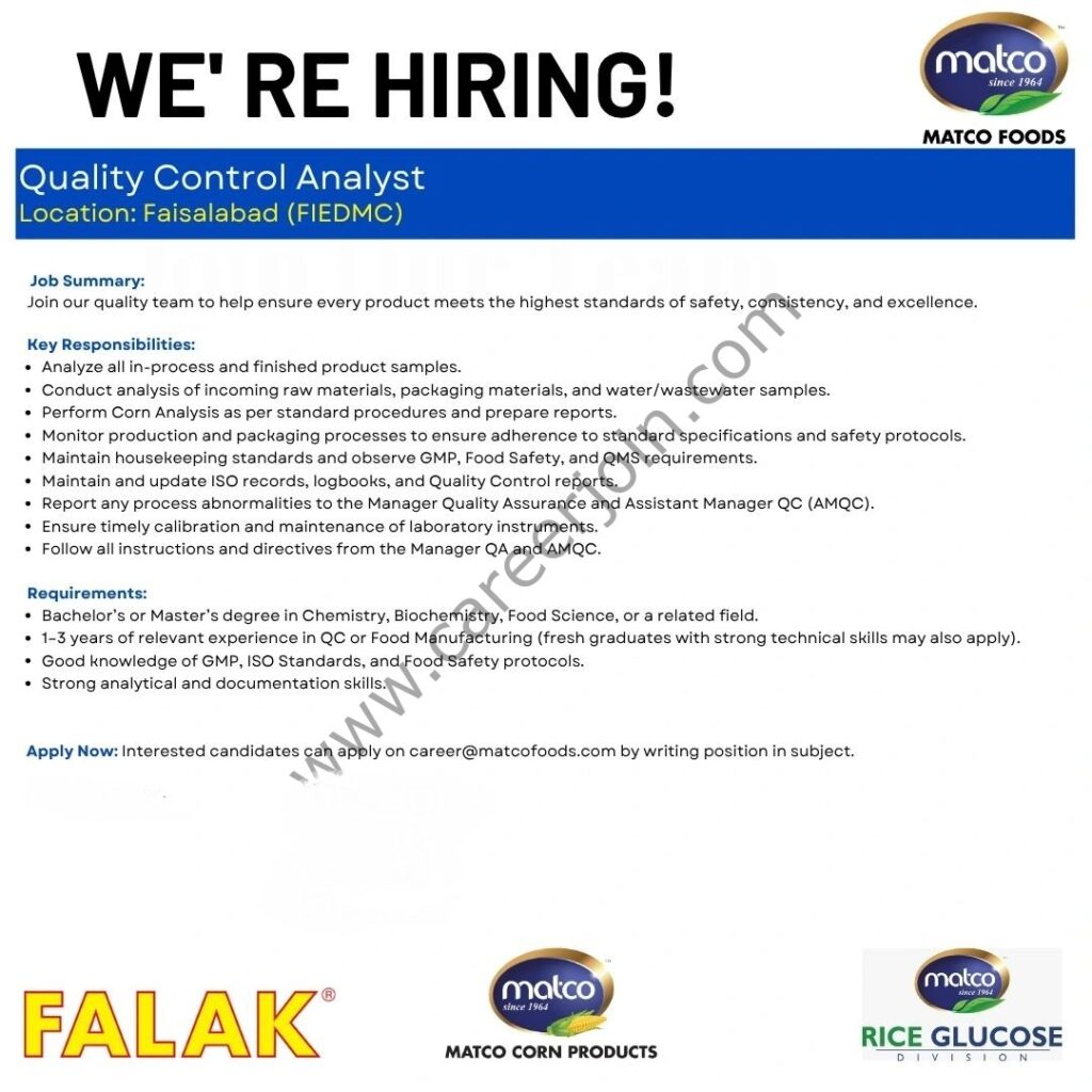 Matco Foods is in need of a Quality Control Analyst to be a part of our team in Faisalabad (FIEDMC).