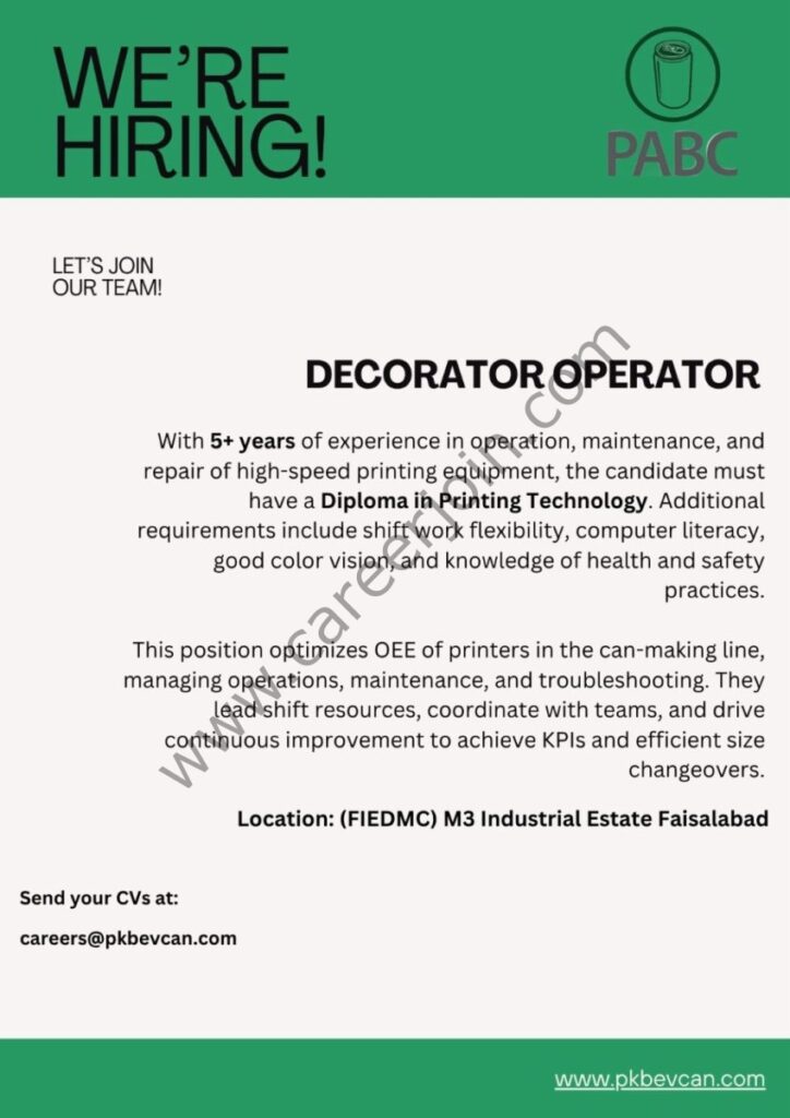 Pakistan Aluminium Beverage Cans Limited PABC Jobs Decorator Operator